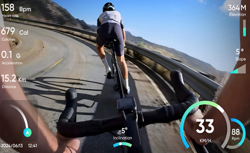 La possibilità di integrare i dati nei video è uno degli aspetti più interessanti. Velocità, frequenza cardiaca e GPS possono essere sincronizzati da piattaforme come Strava, dispositivi Garmin e Apple Watch.